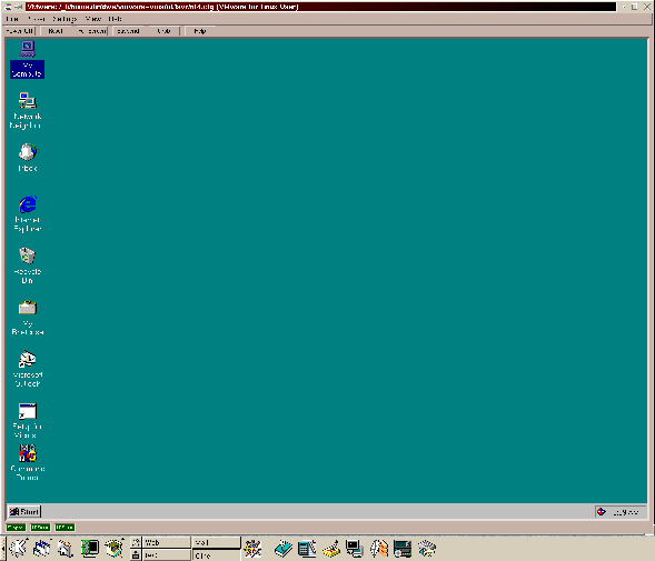 I have installed and run VMware on several different machines with varying system capabilities. Some have been Intel Pentium machines and some AMD. Some have had IDE disk drives, and some SCSI drives only. My desktop at this writing was an AMD 350MHz machine with 128 mb of memory, an 8mb video card, and several gigabytes of hard drive space available to the virtual machines. Its host OS is Caldera Open Linux 2.3 and the screen is a 19 inch display running in True Color at 1600 by 1200 pixels. The guest OS is MS Windows NT 4.0 with Service Pack 3 installed. Typically, I set the screen resolution of the guest machine to True Color at 1152 by 864 or 1280 by 1024 so that I can still have other screen real estate available for other windows on the same desktop.